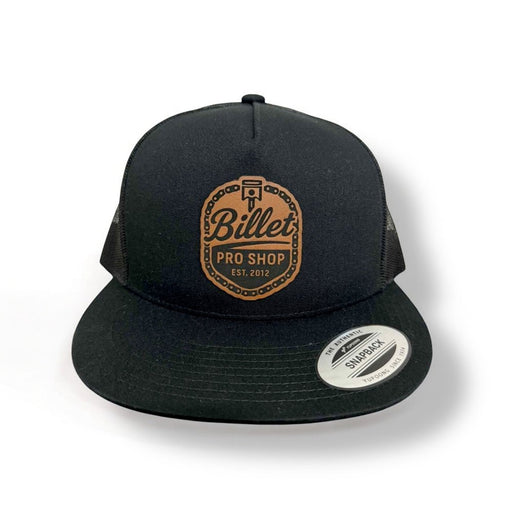 Billet Pro ShopFeaturing our retro-style logo on a raw hide patch, this flat bill trucker snapback is made to rep the brand with style. Flat bill trucker design...